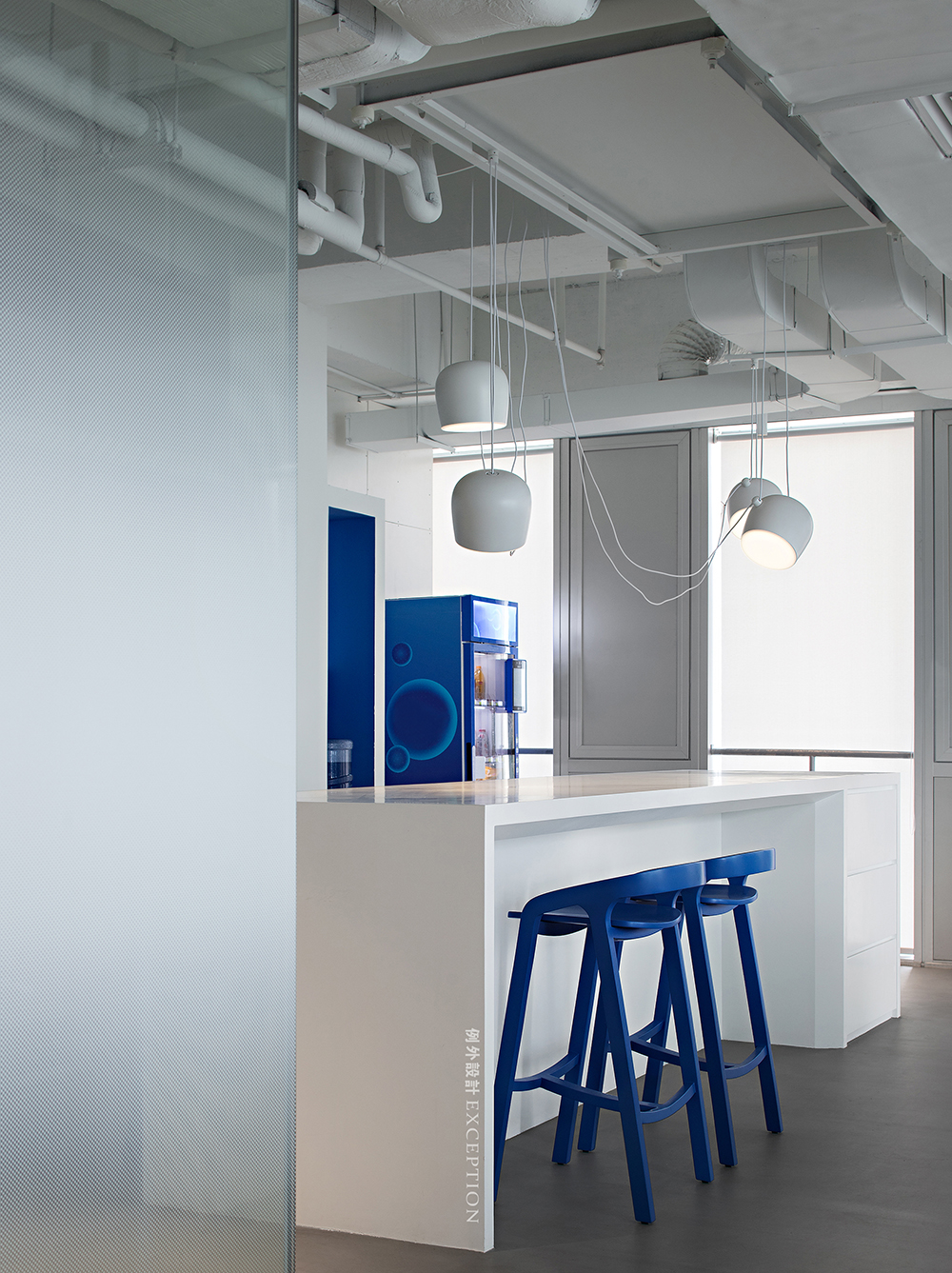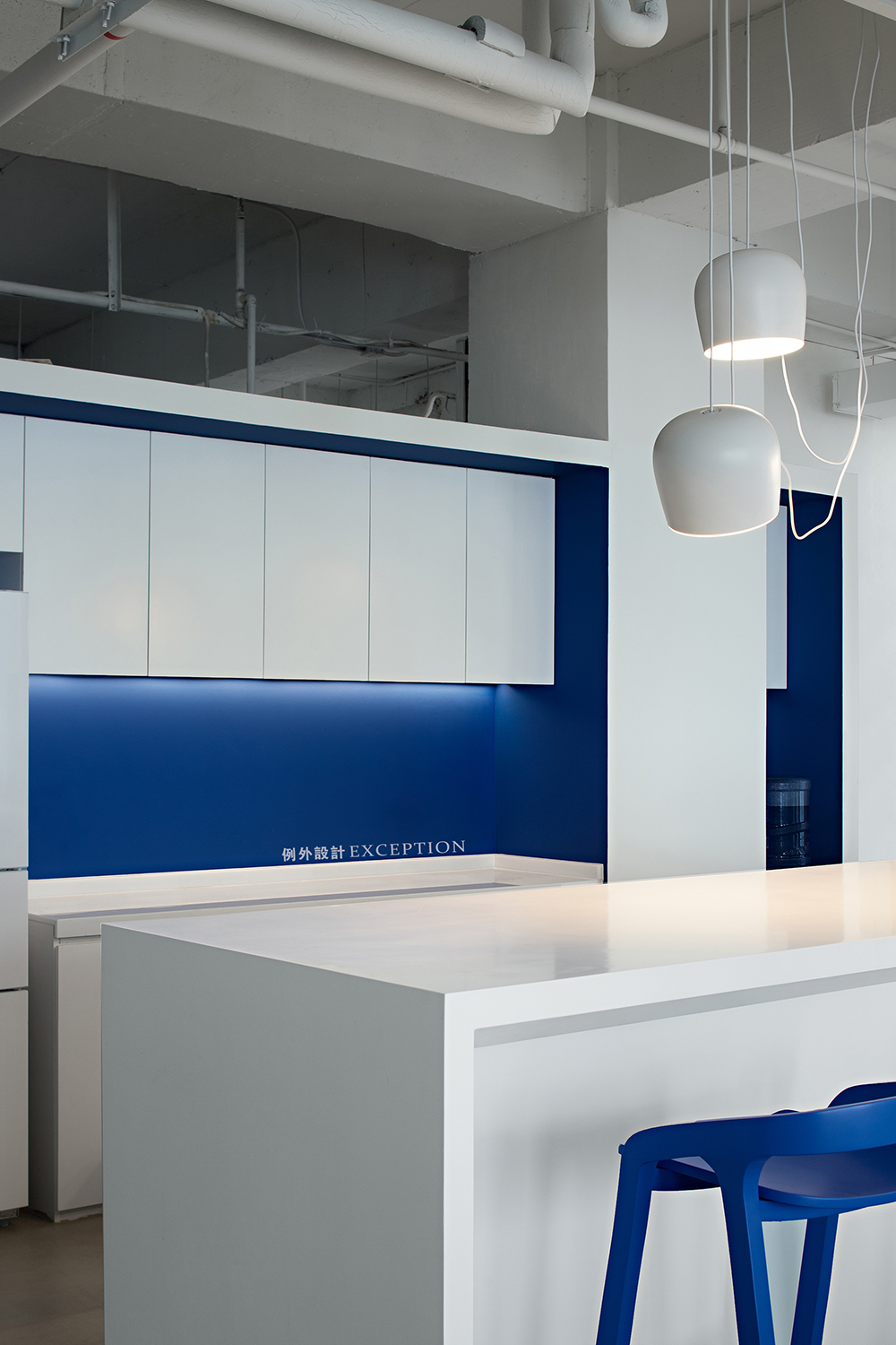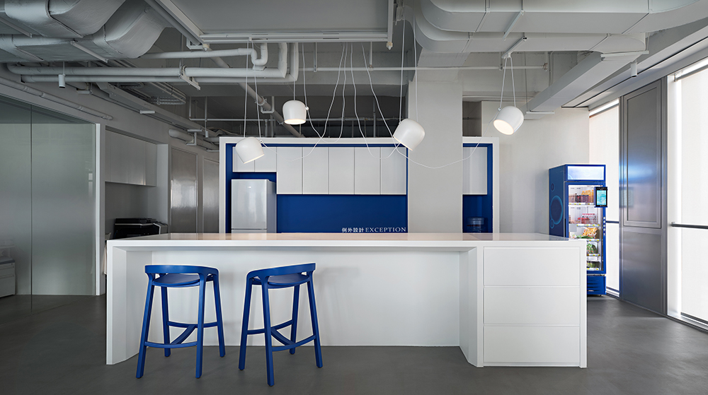 辦公區(qū)依舊遵循簡(jiǎn)潔高效的設(shè)計(jì)原則,沒有邊界、沒有過多的贅飾,真正創(chuàng)建一個(gè)讓大家自由放松、靈感迸發(fā)的空間,扁平化的工作管理與交流,對(duì)于工作中隨時(shí)可能出現(xiàn)的需求變化,一個(gè)開放透明的環(huán)境更有利于團(tuán)隊(duì)迅速做出反應(yīng),靈活彈性地隨機(jī)應(yīng)變。無意闖入的克萊因藍(lán)似乎打破了某種平衡,形成新奇的視錯(cuò)覺,活躍了辦公氣氛。