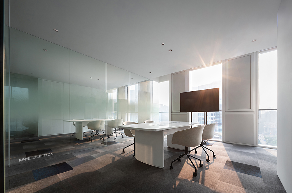 會(huì)議室采用相對(duì)克制的設(shè)計(jì),讓渡給空間的功能性。讓會(huì)議模式始終是沉浸的、交互的,通過光線和結(jié)構(gòu)來傳遞空間情緒,保持豐富且連續(xù)的空間秩序。陽光劃破天際,明亮通敞的空間中,思緒激昂,靈感碰撞,一個(gè)新的解決方案即將脫穎而出……