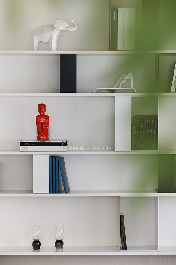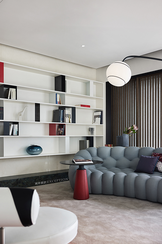 紅棕色漸變地毯鋪就一室的俏皮與優(yōu)雅,整面米色開放式櫥柜,滿足了日常的展示與收納場景。書櫥中的動物飾品呼應著隨處可見的自然氣質(zhì),不經(jīng)意間一瞥,便能激發(fā)出生活中的幸福靈感。