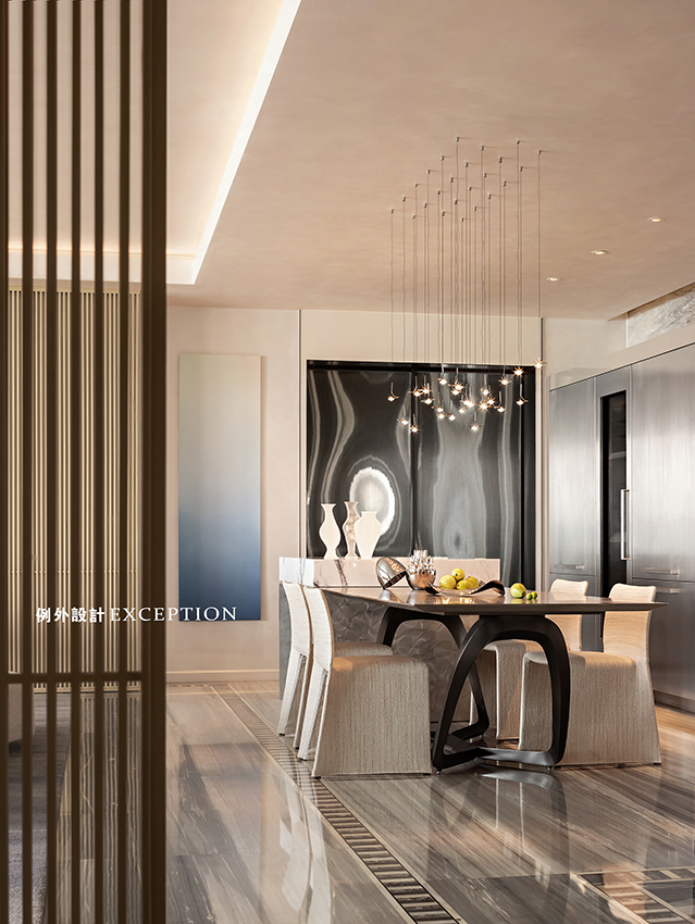 空間除了基本的功能需求之外,理應(yīng)成為精神休憩的樂(lè)園。設(shè)計(jì)需要探索生活的本質(zhì)和內(nèi)核,去匹配居住者的多維高度。品酒區(qū)既適合一個(gè)人的高質(zhì)量獨(dú)處,也可以容納歡聲笑語(yǔ)的親子時(shí)光,專(zhuān)屬的生活故事不斷豐富著空間的層次和活力。