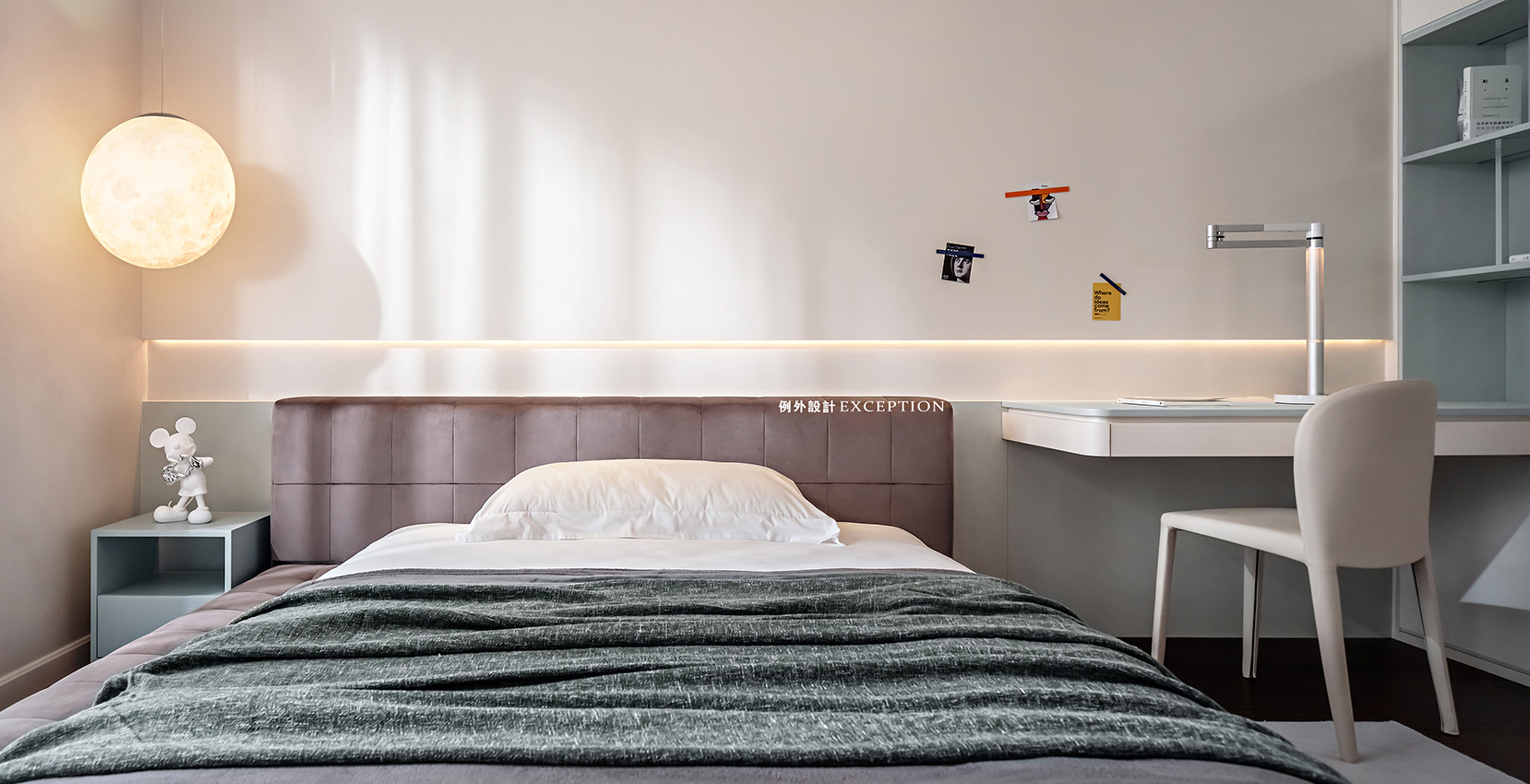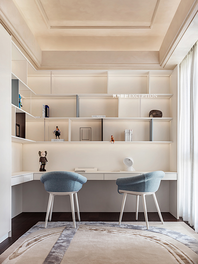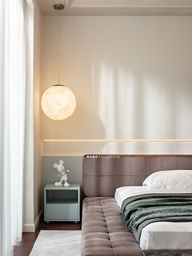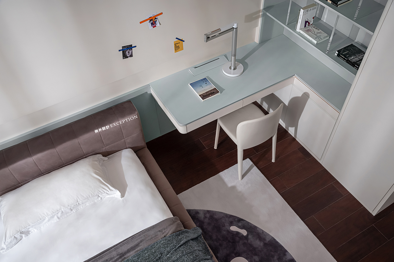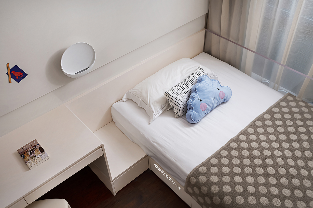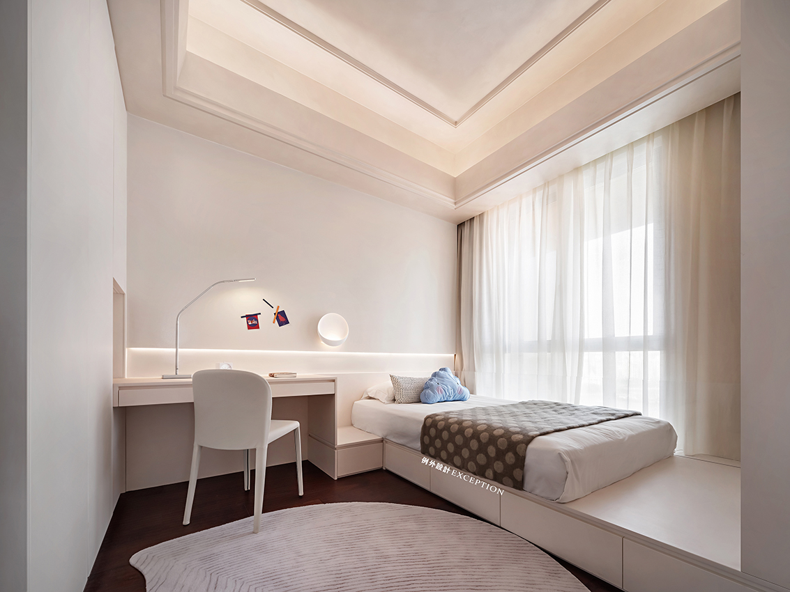 清晨的陽(yáng)光溫煦明媚,是大自然對(duì)人類(lèi)永不停歇的福澤,讓人滿懷希望去奔赴、熱愛(ài)。臥室是孩子成長(zhǎng)的庇護(hù)所,良好的觀景視野是他創(chuàng)想可以抵達(dá)的遠(yuǎn)方,柔和的色彩也為小小的個(gè)人天地預(yù)設(shè)了溫暖純澈的方向。