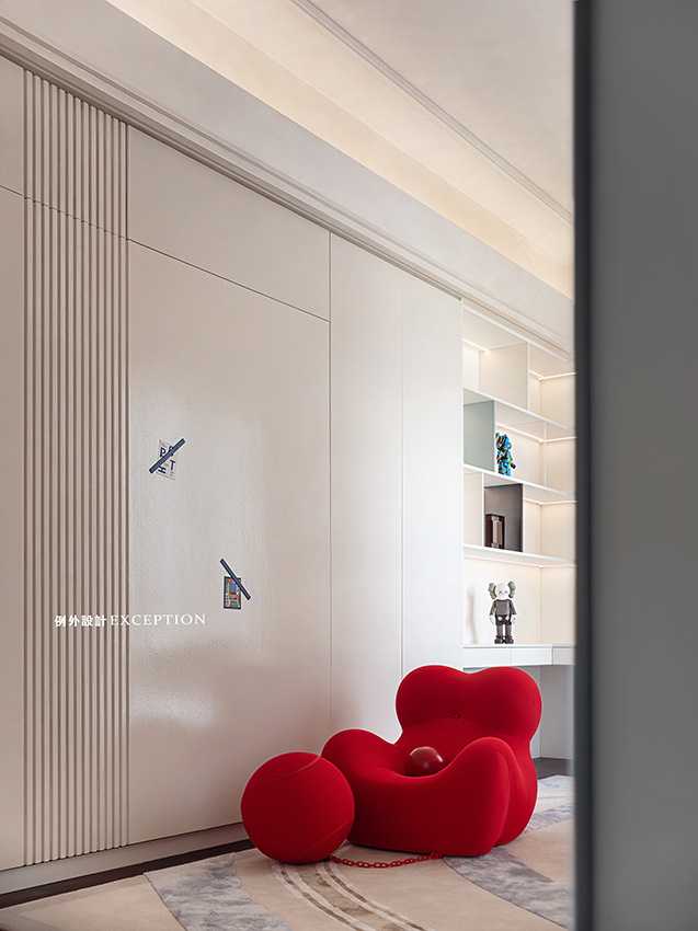 設(shè)計(jì)師希望兒童娛樂(lè)區(qū)是一處能承載個(gè)性、安放快樂(lè)的異想世界。繪畫(huà)閱讀區(qū)、奇趣手辦和磁性白板墻,多重場(chǎng)景的構(gòu)設(shè)豐富了他們的成長(zhǎng)記憶,讓童年的快樂(lè)蕩漾在生活的每一個(gè)角落。