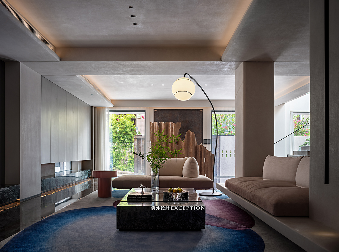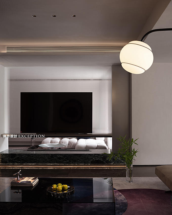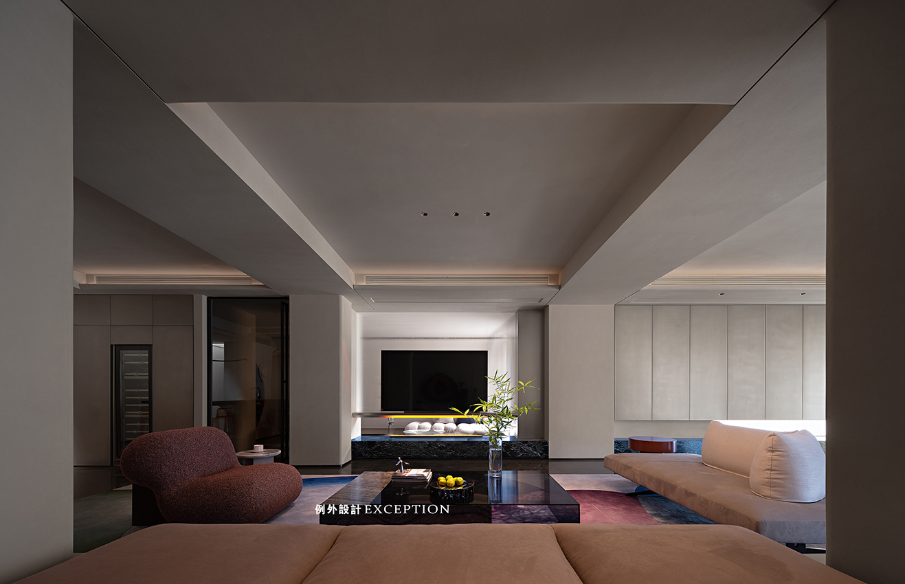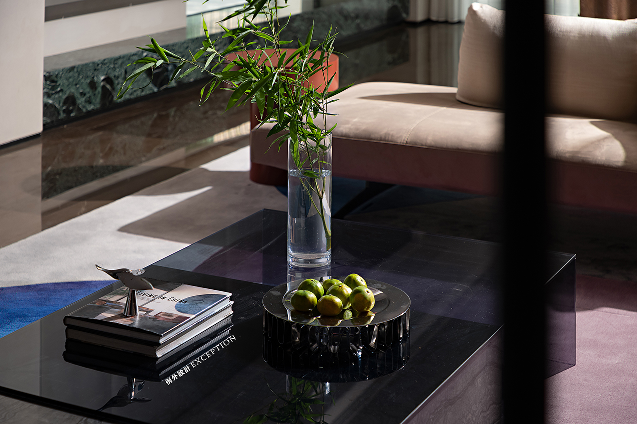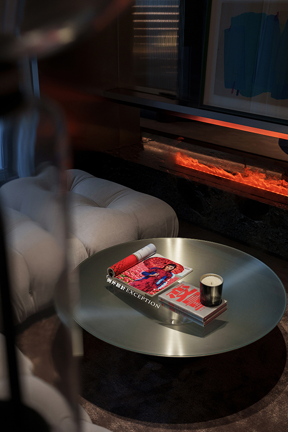 設(shè)計(jì)以居者的生活態(tài)度為藍(lán)本,搭建起更深入人心的生活方式。客廳更多地是家人一起互動(dòng)的空間,格調(diào)高雅,品位獨(dú)特。紅色壁爐將對(duì)生活的熱情完美展現(xiàn),大理石弧形茶幾與紅色邊幾高低錯(cuò)落,電動(dòng)窗簾閉合后,室內(nèi)外形成一種朦朧的美,在壁爐旁看書,家人對(duì)坐相談甚歡,幸福生活的厚度在時(shí)光的凝練中累積起來。
