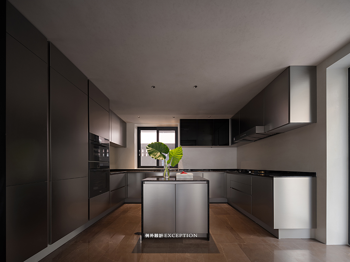 幸福藏匿在具體可感的日常中,我們聽到的、看到的、嗅到的,所有感受到的才是最讓人共情的。屋主之前有在國(guó)外生活的經(jīng)歷,設(shè)計(jì)師為此增加了島臺(tái),和四周金屬質(zhì)感的柜體搭配起來,是煙火日常里最安心、便利的存在。
