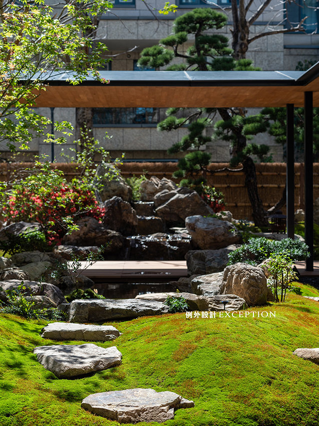 推開庭院門扉,中式山水的雅致撲面而來,水聚天心的格局賦予了場域源源不斷的能量。綠意蔥蘢,花枝清麗,池影蕩漾,閑庭信步其間,心緒瞬間得到寧靜。