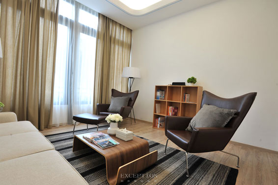 入門接待處,兩把天藍色蛋椅以其柔和的外觀線條呼應著同樣以圓弧形處理的內嵌壁柜,這一出自丹麥設計師雅各布森的經典設計成了門廳的亮麗風景線,高級羊絨布軟包帶來舒適親和的坐感。柔和的設計往往能軟化人的心緒,設計師希望以柔之意,讓身處其中的人體悟這份內斂而不張揚的關懷。濃濃的母愛,正是如此吧!