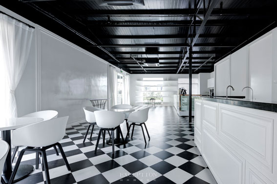 推門而入,咖啡吧臺的奶白色仿若卡布奇諾里綿密甜膩的奶沫,吸引著人們體驗咖啡在味蕾釋放的快感。歐式框看似隨意的排布,卻給空間帶來一種規整平衡的魅力。