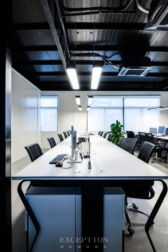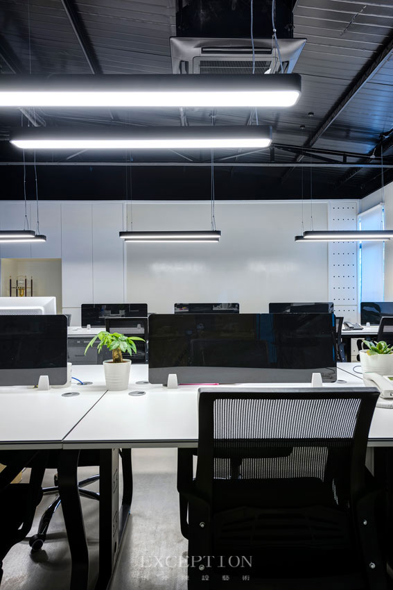 開放式的辦公桌加強了彼此間的交流與合作,默契不受約束,與時間共同見證大家的成長與進步。綠植的加入,足以停泊暫時疲憊的雙眼。在黑白主調的空間,一盈綠意也能點燃滿室的活力。