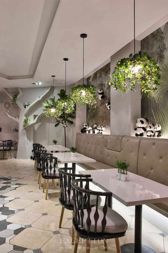 黑白灰的經典用色搭配,讓整個空間更加有層次感,隨處可見的植被撩動心弦。在這樣的場景,還不快快抱起熊貓寶寶來張美美的自拍吧!