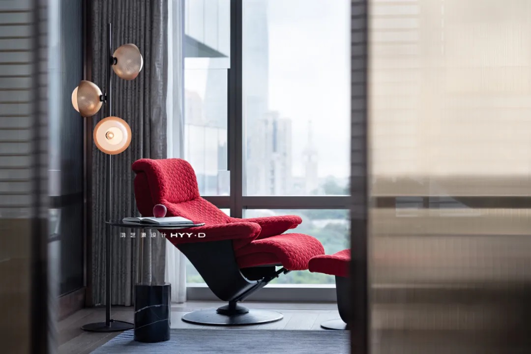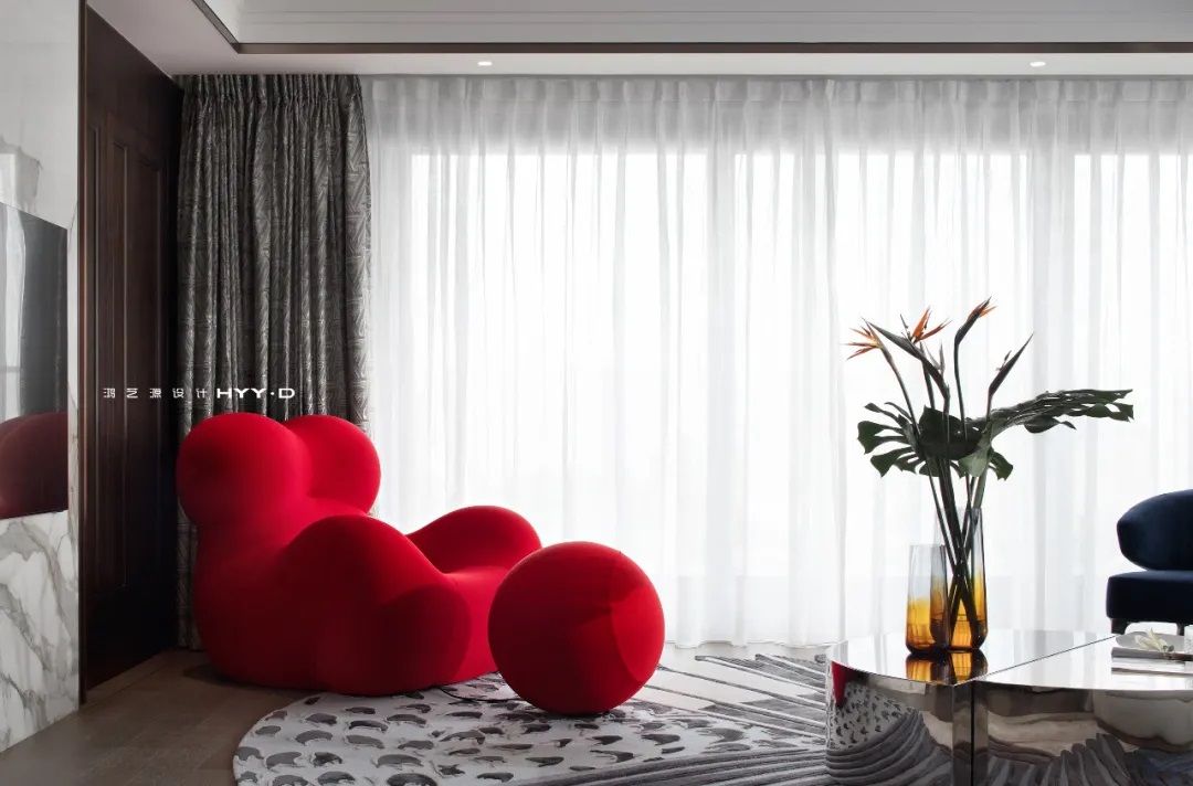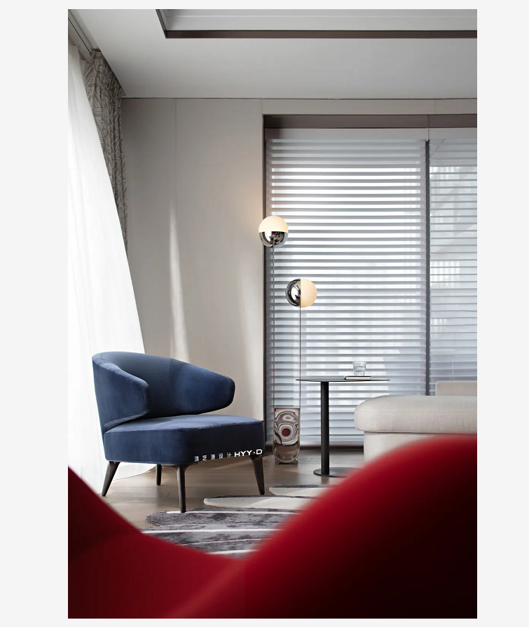 一個待得住的家,每一個角落都有著讓人能夠放松的理由。媽媽的懷抱以最柔軟的姿態(tài)散發(fā)著母親般的溫暖與安全感,紅色熱情,如同生活的熱鬧斑斕,那是一種可感知的暖意。藍(lán)色單椅優(yōu)雅紳士,紅藍(lán)撞色融入時尚的審美趣味,家人小憩、閱讀,靜靜陪伴也是一種無聲的默契。