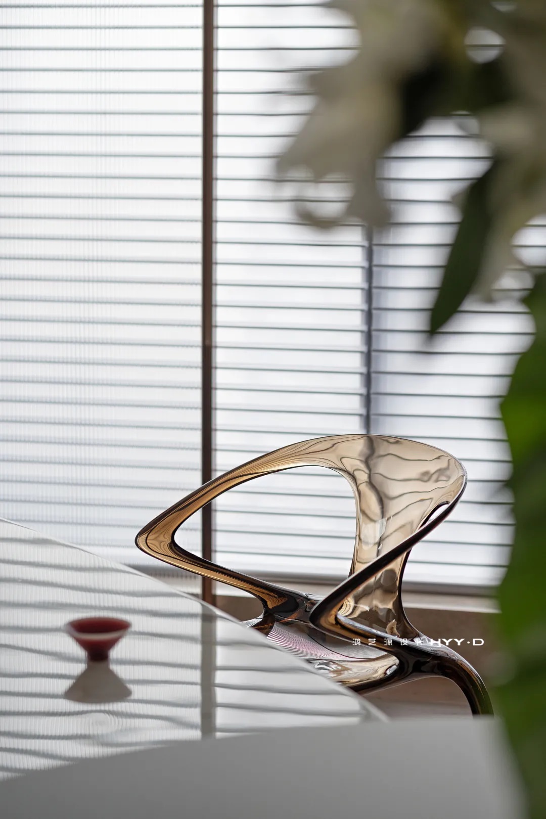 在公共空間,力求讓不同家庭成員的興趣得到最大的釋放。品茶、會客抑或是靜思、辦公,不同功能的組合延展了關(guān)于家的塑造與暢想。光的浸染隨著時間的推移為生活增添了幾分慵懶閑適的注腳。